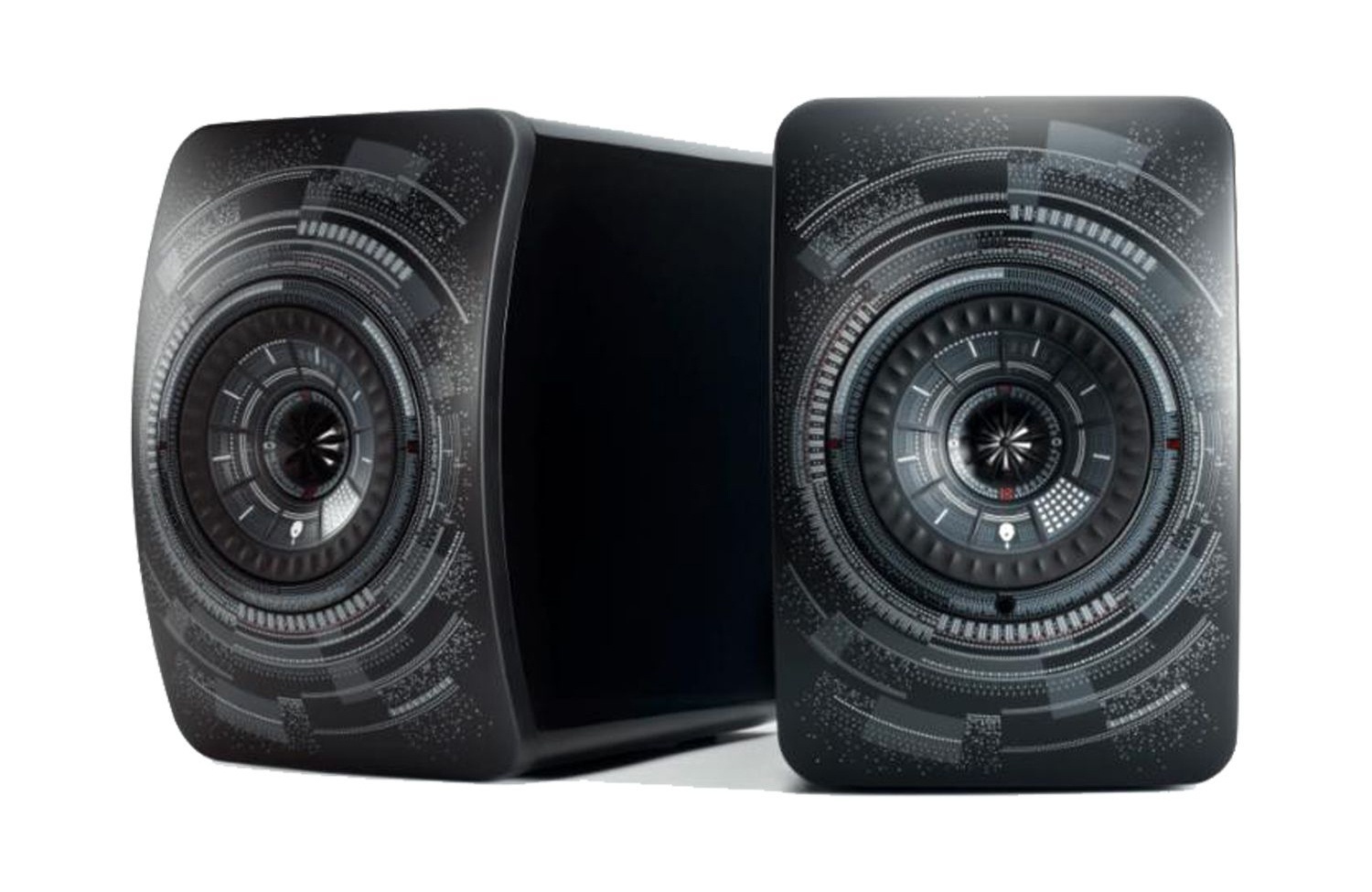 | Chất liệu & Thiết kế | Nhà thiết kế đã tạo ra những chi tiết phát sáng ở mặt trước của loa. Nhà thiết kế thêm vào cụm driver Uni-Q của LS50 những chấm tròn nhỏ có khả năng phát sáng, cùng với đó là những vòng tròn đồng tâm biểu trưng cho nhịp điệu của các bản nhạc cũng được thiết lập xung quanh tổ hợp củ loa đồng trục, tạo ra mạch thiết kế liền lạc và đậm tính biểu tượng cho sản phẩm. |